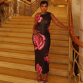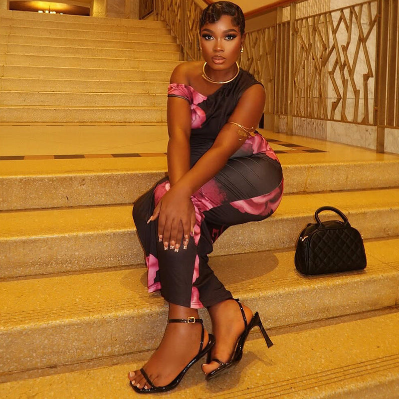 Elegant Printed Bodycon Pleated One-Shoulder Dress
