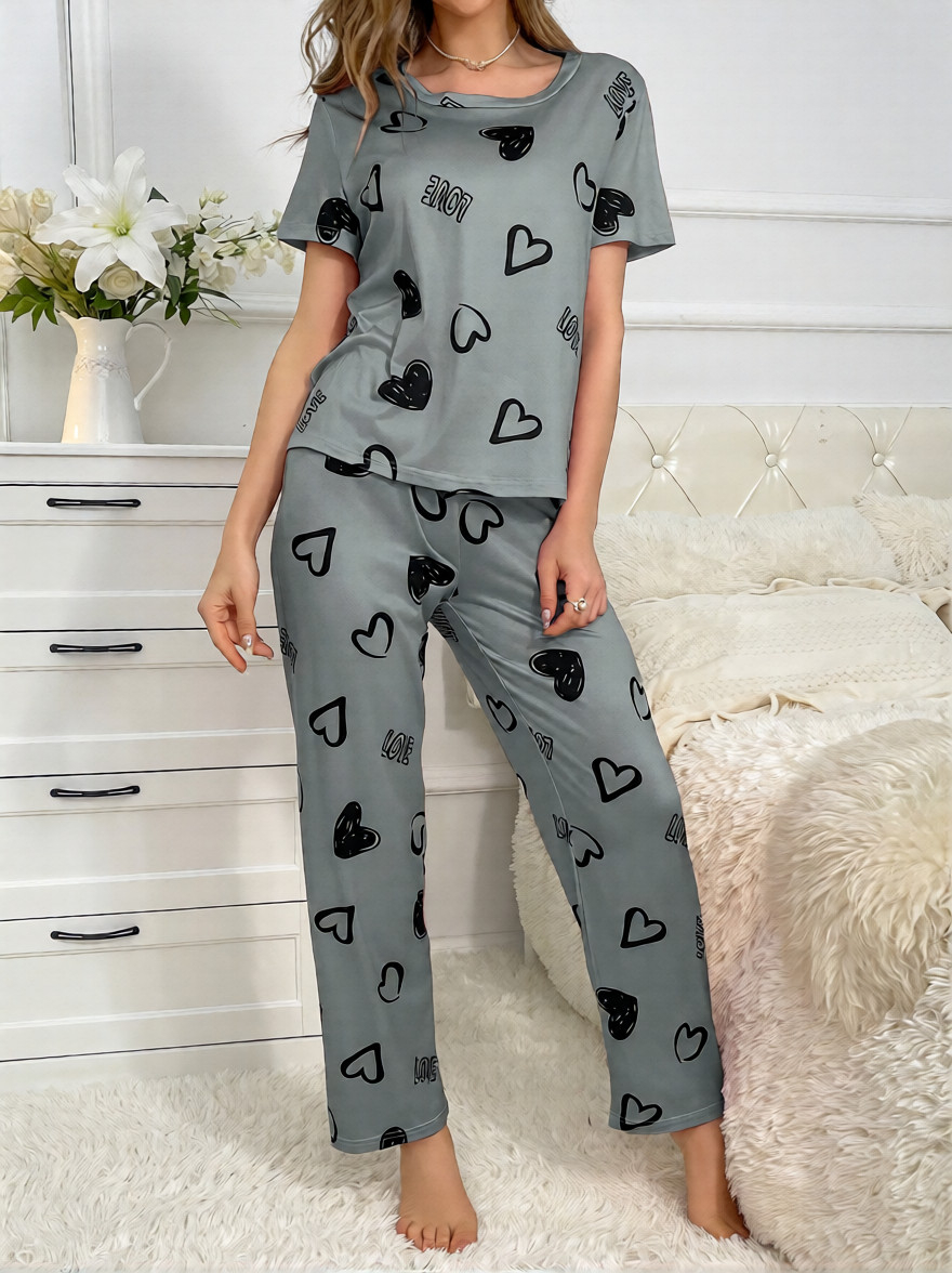 Ms Xiyin Milk Silk Cute Printed Pajama Two-Piece Set