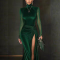 Solid-color Textured Long-sleeve Elegant French-style Dress