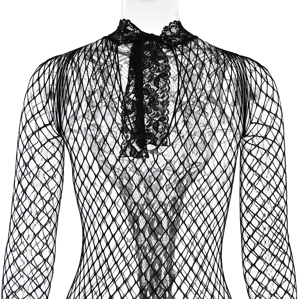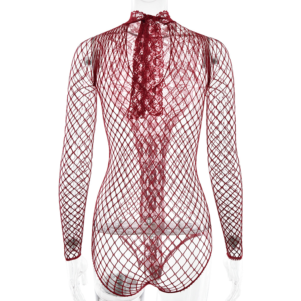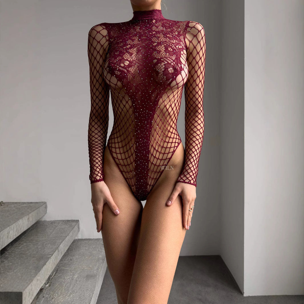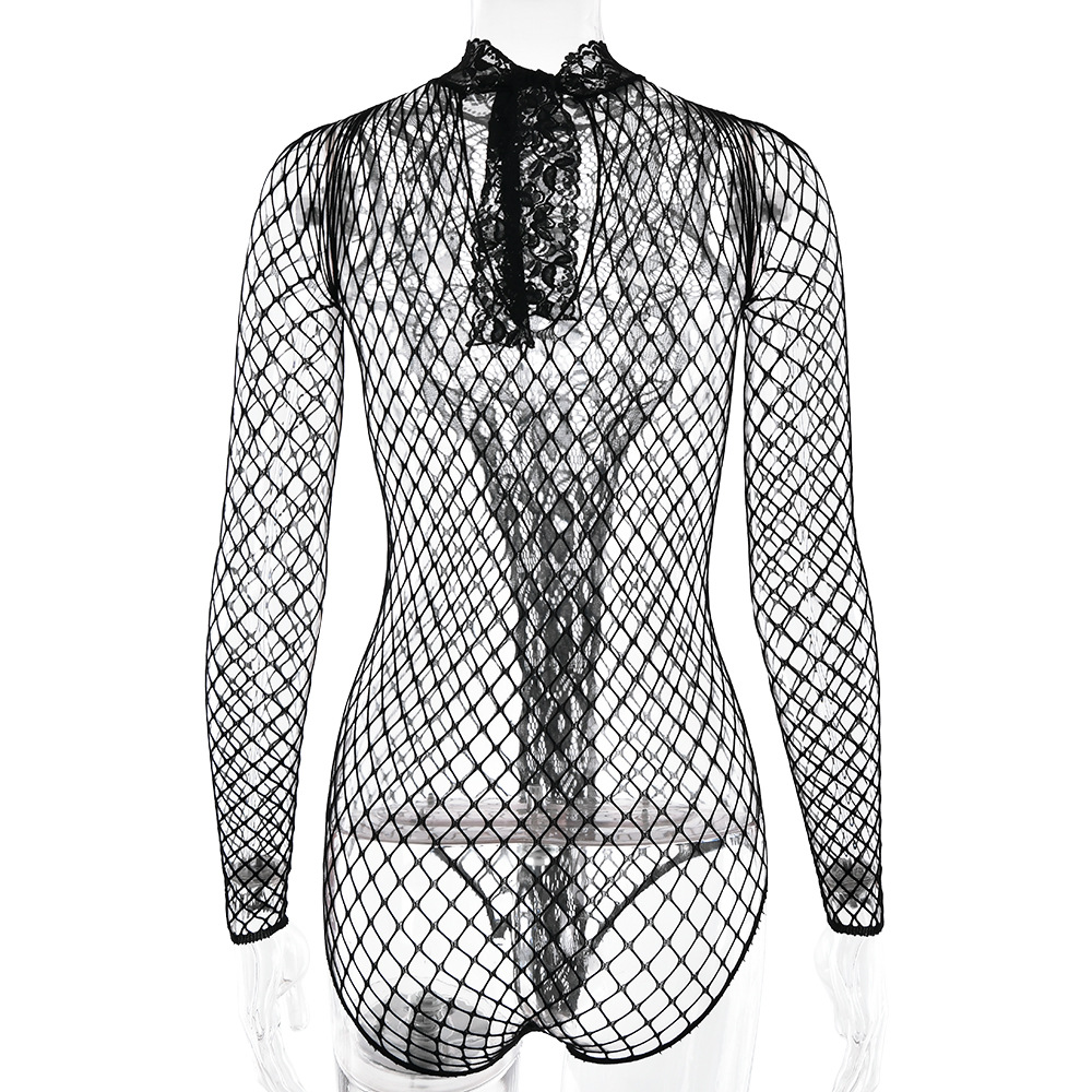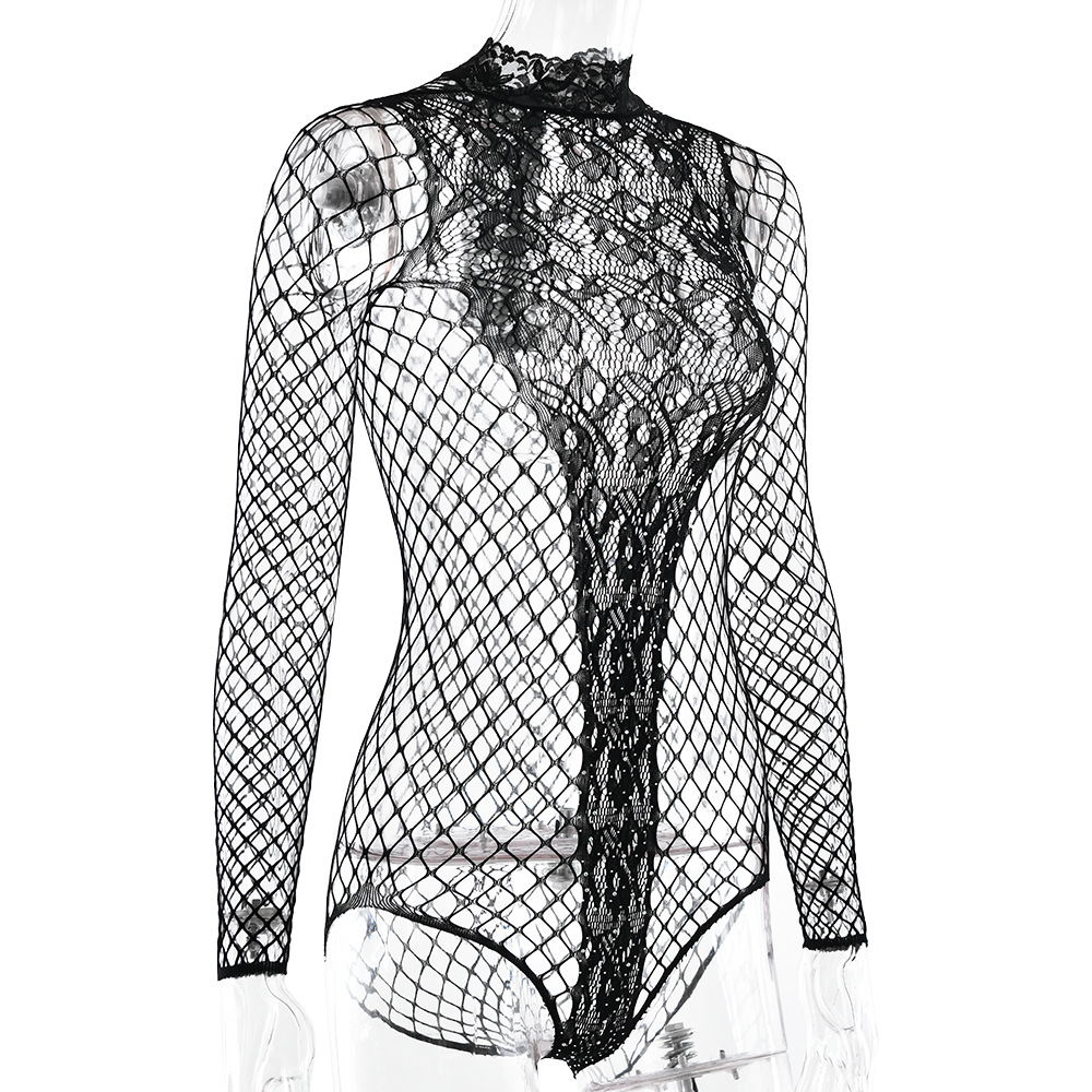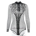 Spicy Girl Hollow Jacquard Mesh Bodysuit