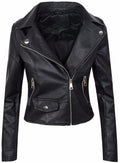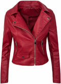 Women's Fall Winter Coat Slim PU Leather Short Zipper Leather Jacket Leather Coat