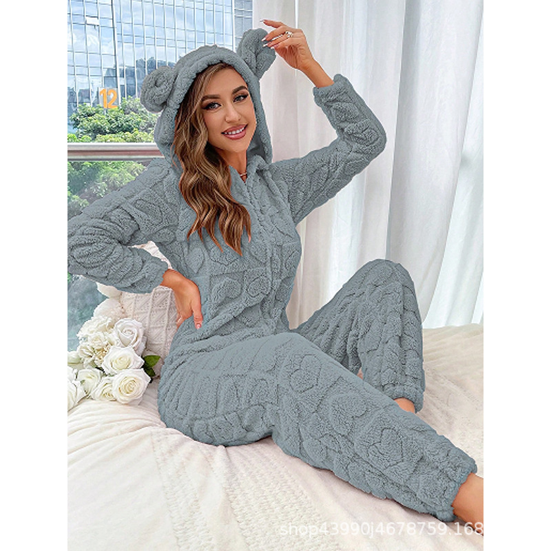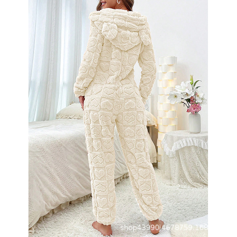 Womens Warm Hooded Jumpsuit For Home Wear